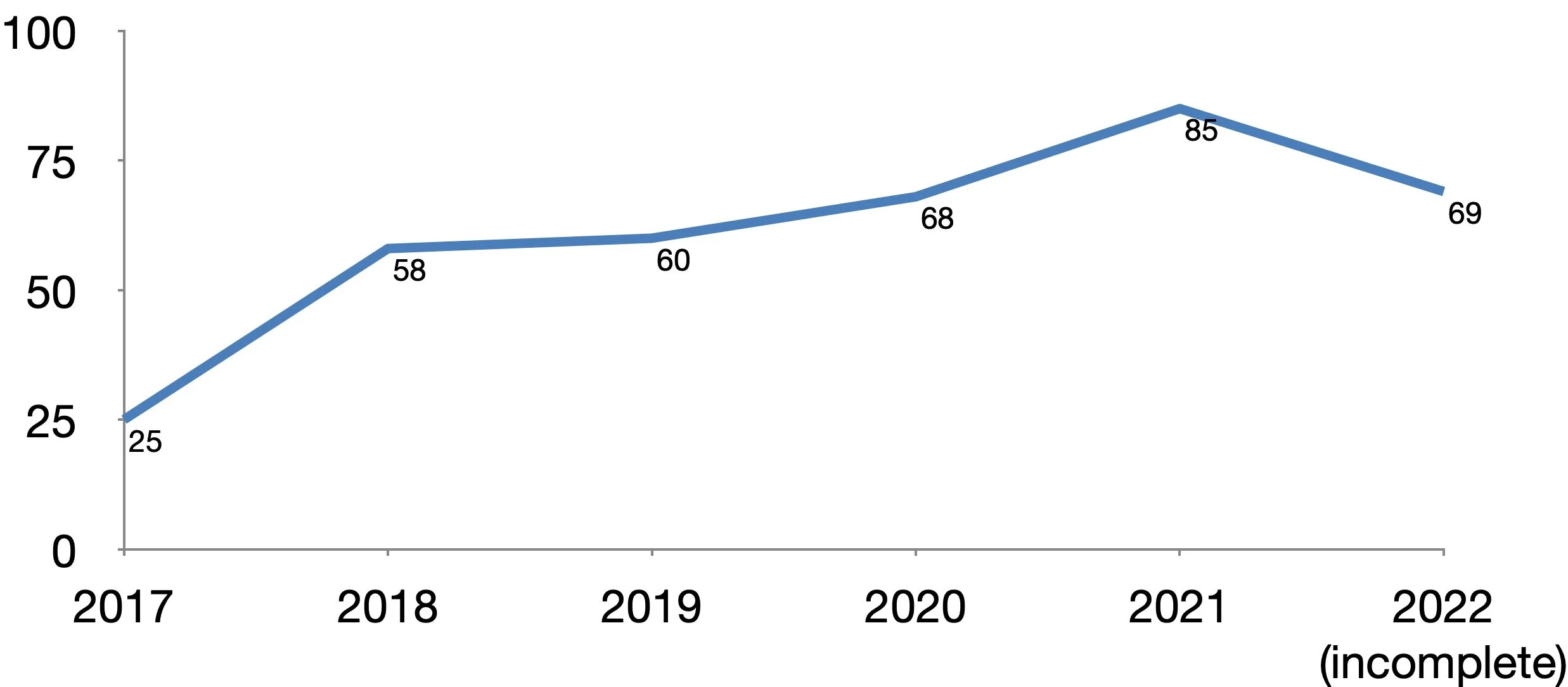 On October 5th, 2022, the FDA added 178 new devices to its list of (approved) “Artificial Intelligence and Machine Learning (AI/ML)-Enabled Medical Devices.” The full list is conveniently available at that page for download as an Excel file, and I decided to take advantage of this to dig a little deeper into the data. Mostly I was interested in the pace of FDA approvals — which of course reflects both the number of applications and the speed of the FDA process. What I found was interesting, and not exactly what I expected.