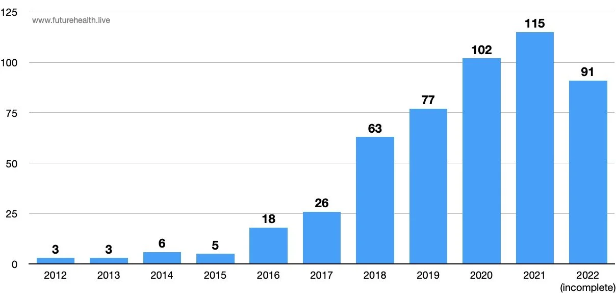 Not too surprisingly considering the hype around AI — and its potential — we can see that the pace of FDA approvals has picked up substantially in the last 10 years. While 2022 is not yet complete as of this writing, if it continues at the current pace it should just exceed 2021: