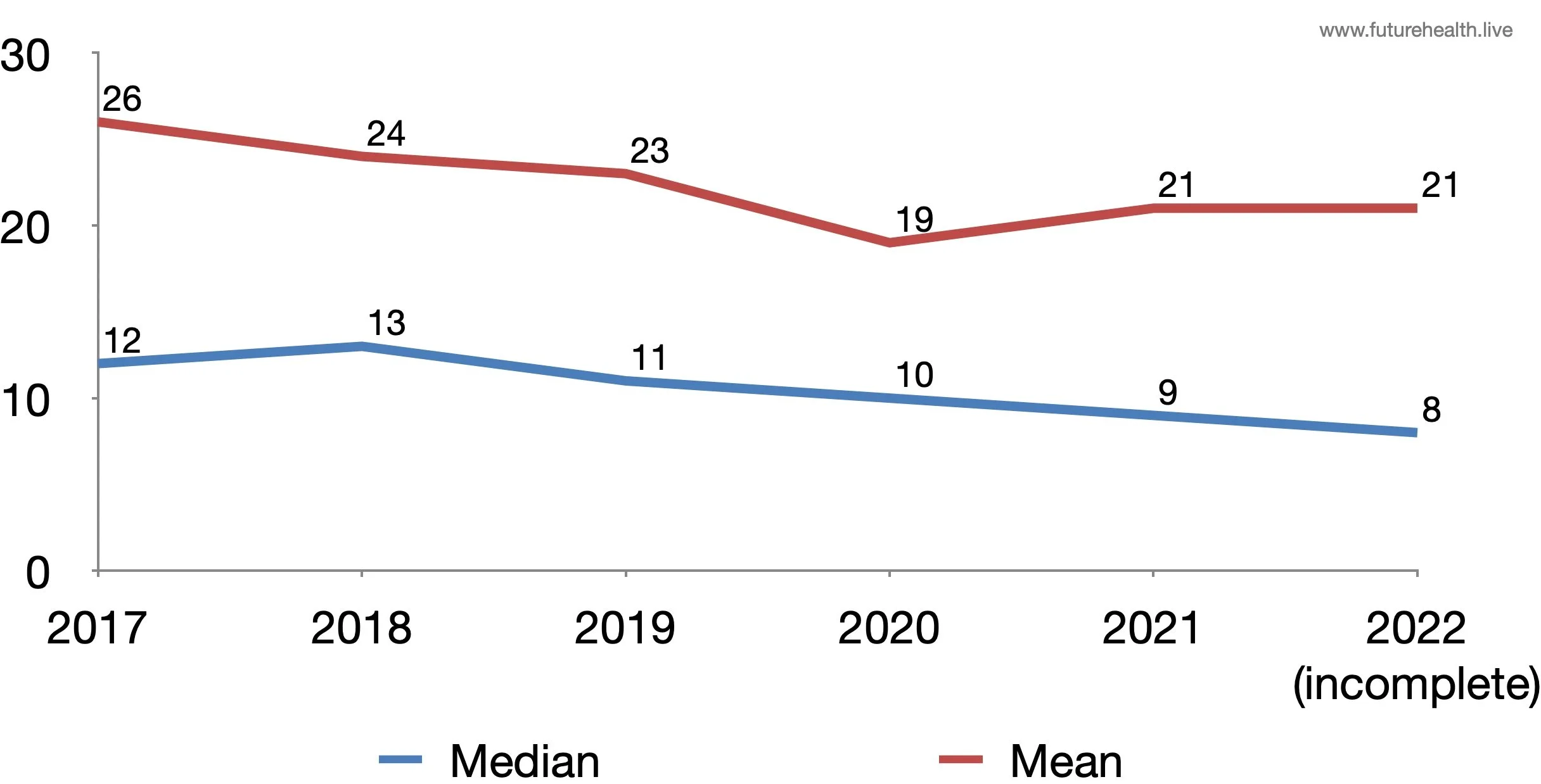 For example, in 2022 so far, just 10 of the 55 companies winning at least one approval (18%) were responsible for more than half of total approvals. Five years ago, that percentage was 55%: