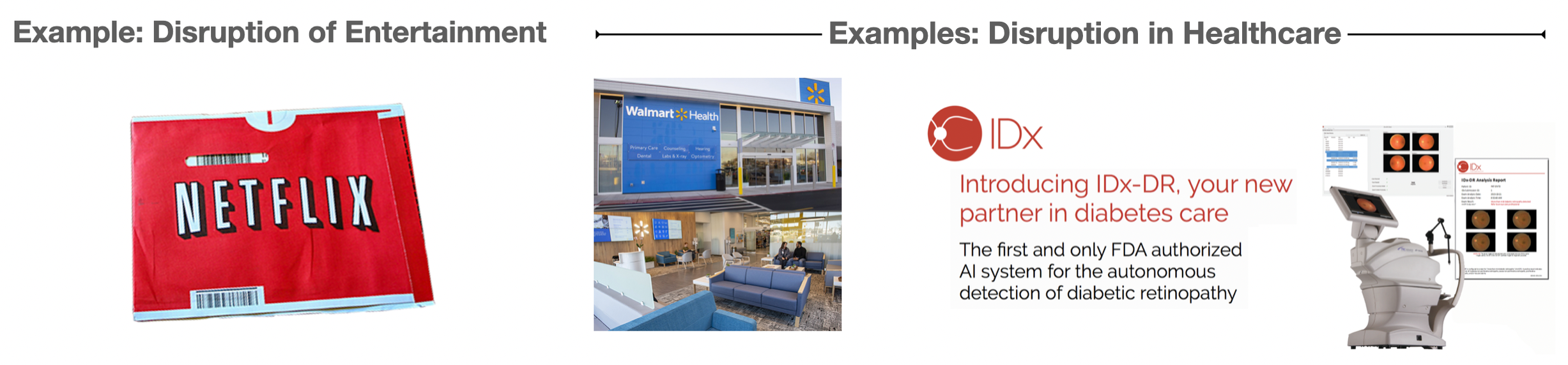 Part II provided specific examples of disruption within the healthcare system: from Walmart Health to IDx-DR, the first AI (artificial intelligence) system approved by the FDA to make a medical diagnosis (of diabetic retinopathy) without a doctor’s input, to Chestlink , an AI system designed to read chest x-rays.